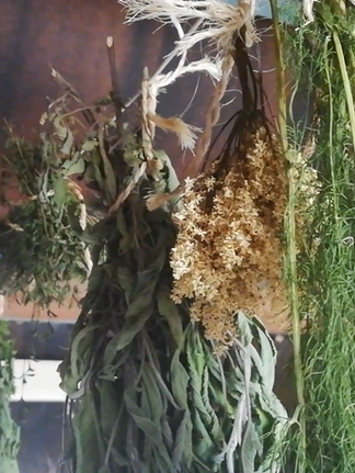 J’aime beaucoup l’idée de pouvoir se soigner avec les plantes (au moins pour les petits maux du quotidien) et c’est donc tout naturellement, que je me suis intéressée aux plantes aromatiques, médicinales et à l’herboristerie. J’ai commencé par construire une spirale à aromates dans notre (ancien) jardin. (J’ai d’ailleurs hâte de pouvoir commencer à replanter ailleurs : ce sera le sujet d’un autre article !) et ai ensuite commencé à concocter mes petits mélanges de tisanes, tout d’abord sans même chercher à connaître les bienfaits spécifiques de chaque plante. Plus tard, j’ai acheté le fabuleux ouvrage "Le livre des simples", d’Erika Laïs qui présente les vertus de nombreuses plantes facilement cultivables en Europe, ou que l’on trouve communément au gré de cueillettes sauvages, ainsi que leurs usages traditionnels et diverses anecdotes. L’ouvrage est superbement illustré et orné d’enluminures, ce qui n’est pas pour gâcher le plaisir de lecture !